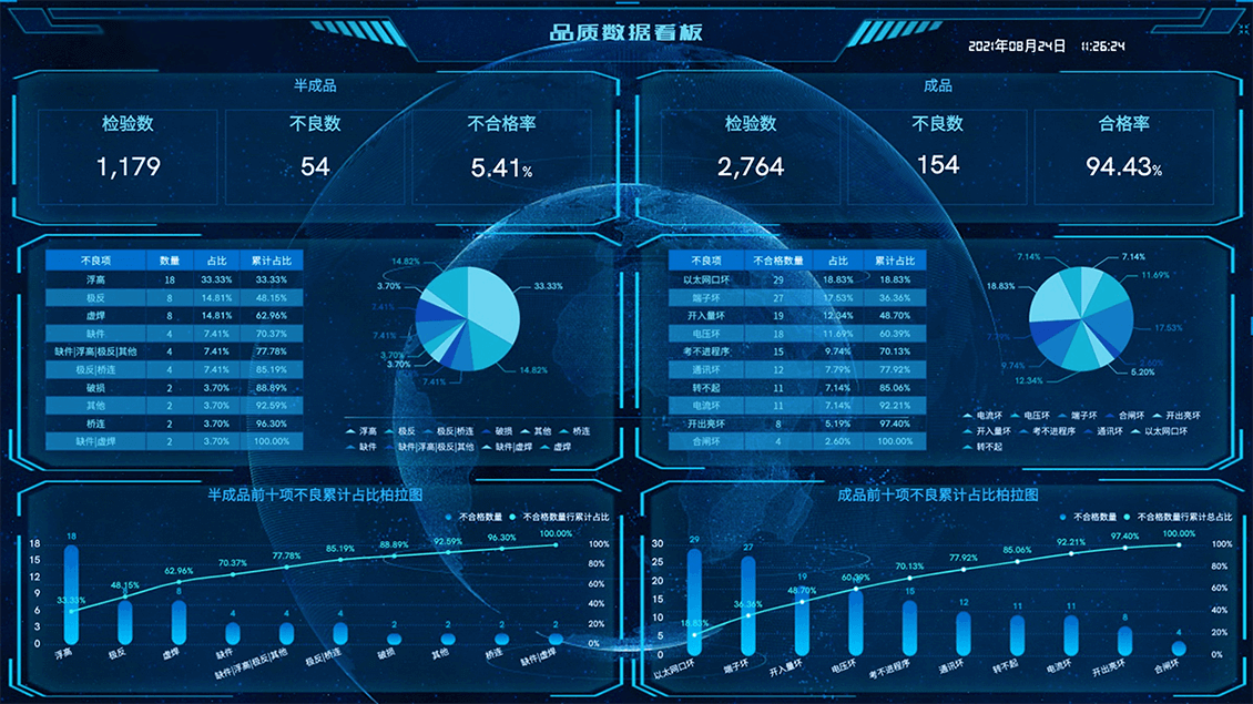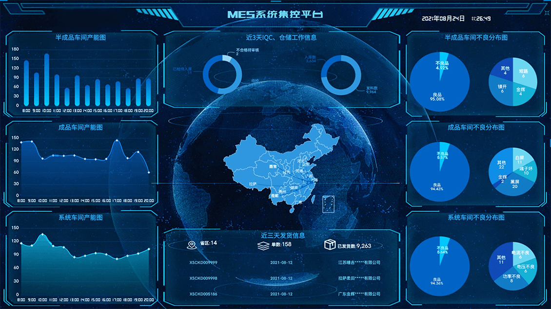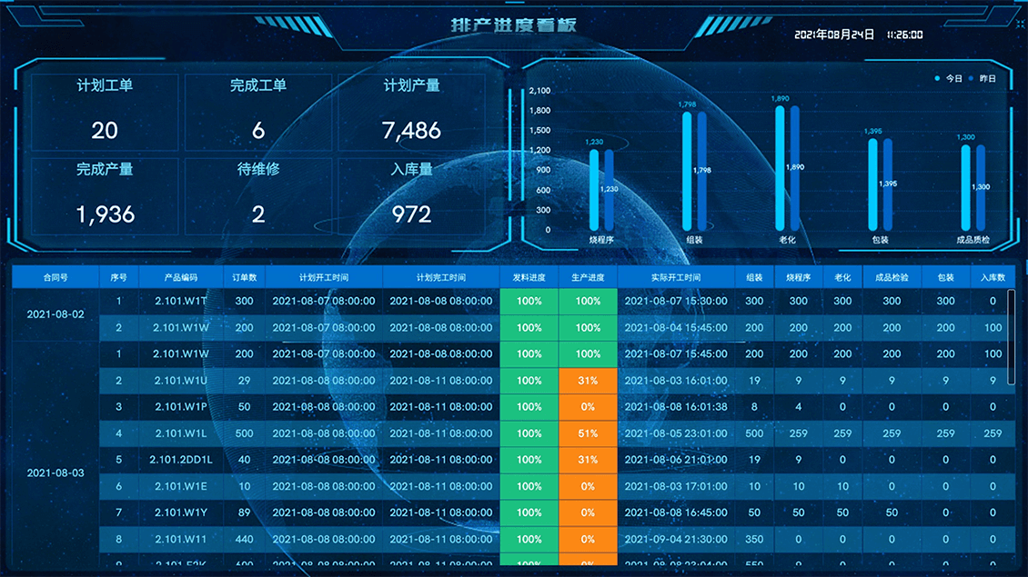 生產(chǎn)現(xiàn)場的每一個(gè)車間,每一道工序,每一條生產(chǎn)線,所有的生產(chǎn)情況、良品情況、設(shè)備負(fù)荷情況等,一目了然