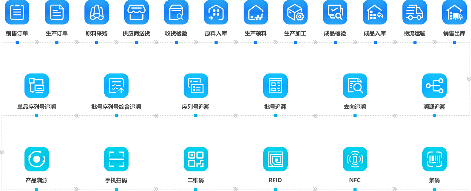 基于二維碼方式,將產(chǎn)品生產(chǎn)過程中大量離散的人、機、料、法、環(huán)信息進行系統(tǒng)性收集與關(guān)聯(lián),達到生產(chǎn)過程透明化,產(chǎn)品可追溯化的效果